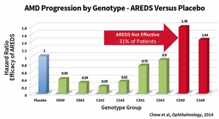 AREDS slowed AMD progression by 3X for ~30% of people, but 50% faster progression for 30% of people