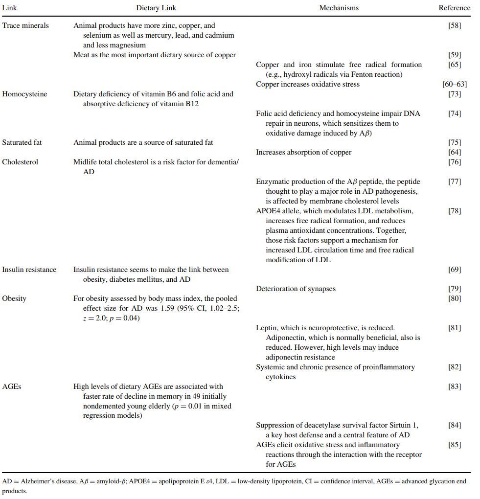 The mechanisms linking dietary risk factors to AD are fairly well known and include