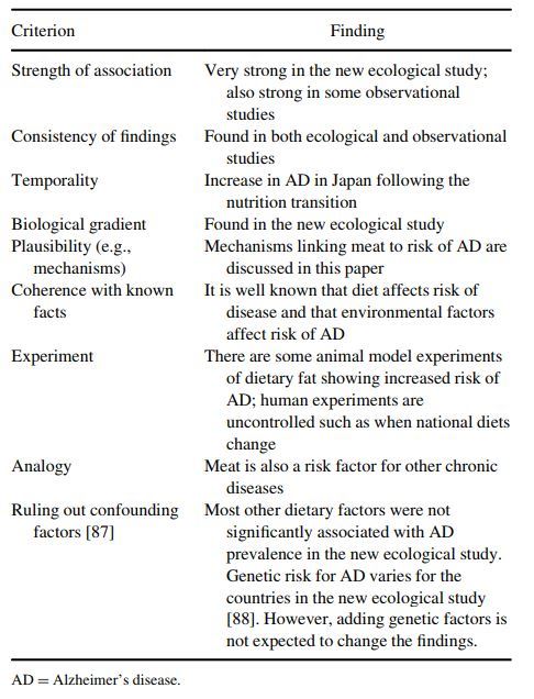 Table 5. Evidence That Meat Consumption Is Causally Linked to Risk of AD