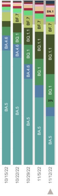 - BQ.1 = 20% of reported (not actual) cases - CDC - Nov 11, 2022