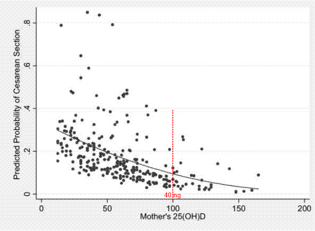 - C-section 3.8 X more likely when vitamin D less than 15 ng - 2009