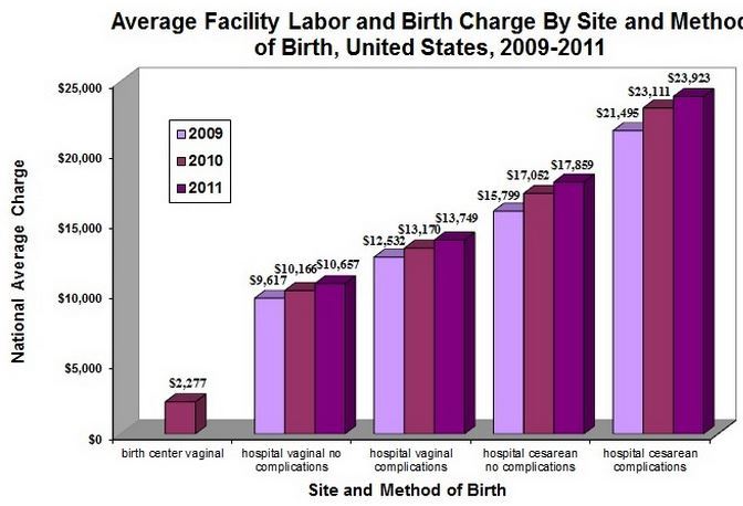 - AVERAGE U.S. FACILITY CHARGES FOR GIVING BIRTH has the following chart