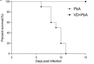 Mice got 2000 IU/kg vitamin D for 5 days in a row before getting PbA (mimicks Cerebral Malaria)