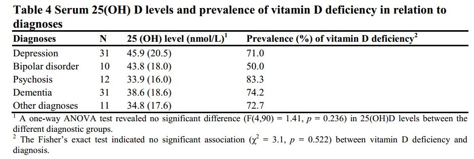 Vitamin D deficiency is common in psychogeriatric patients, independent of diagnosis
