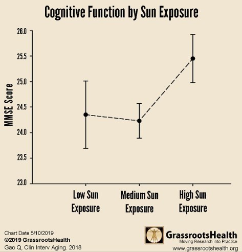 Cognitive impairment is often a gradual, long-term process that affects many older individuals. In October 2018, results from a study assessing the association between sun exposure and cognitive function were published in the journal Clinical Interventions in Aging. In this study, 1192 participants aged 60 years and older and residing in rural China provided information about their long-term sun exposure behaviors including time of day when outdoors, duration outdoors, and use of sun protection. The research team used the Mini-Mental State Examination (MMSE; maximum score of 30) to assess participant's orientation, memory, language, calculation, and attention.