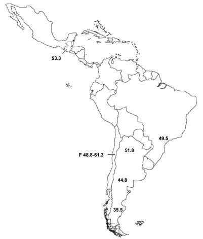 Fig. 7. Mean serum 25(OH)D levels in South-America.69-72