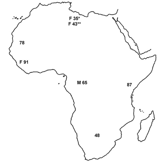 Fig. 3. Mean serum 25(OH)D levels from different studies in Africa.37 43 *) veiled; **) non-veiled.