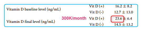 - 300,000 IU monthly oral Vitamin D got levels to only 24 ng, no HPV benefit - 2021