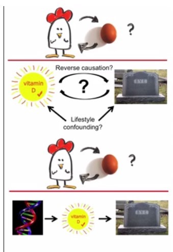 What is mendelian randomisation, and why might it be better than classical observational epidemiology? We now know that approaches linking circulating 25-hydroxyvitamin D (25-(OH)D) to health outcomes are seriously hampered by confounding and reverse causality.2 The circulating concentration of 25-(OH)D is influenced by factors such as time spent outdoors, diet, adiposity, smoking, and acute phase response. Mendelian randomisation attempts to eliminate such problems by exploiting the random allocation of genetic material at conception.