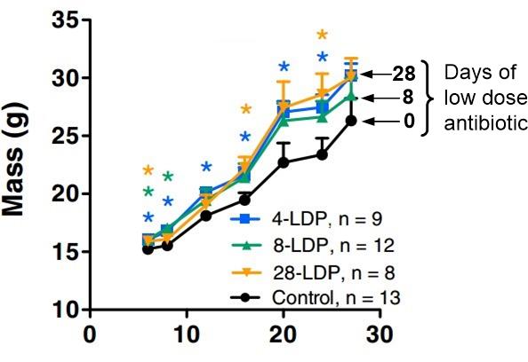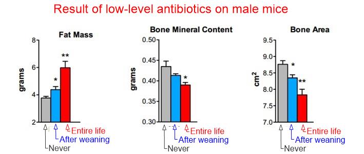 low-level anitbiotics have been fed to farm animals (in the US) for decades to increase weight gain