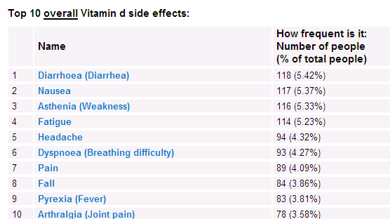 Chart of side effects: Note that these are primarily people who had problems with vitamin D, not all people.
