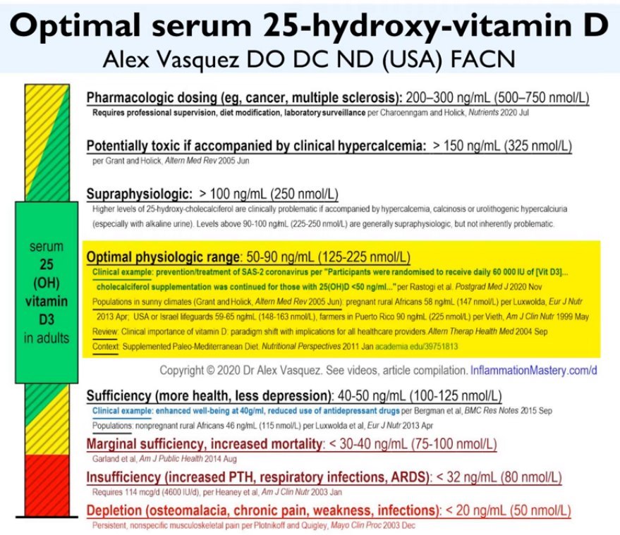 - Saudi study defines normal Vitamin D level to be 50 to 70 ng (diabetes, etc.) - June 2020