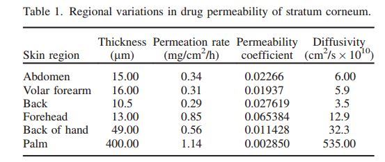 Drug permeability: arm, back, abdomen are much better than the palm