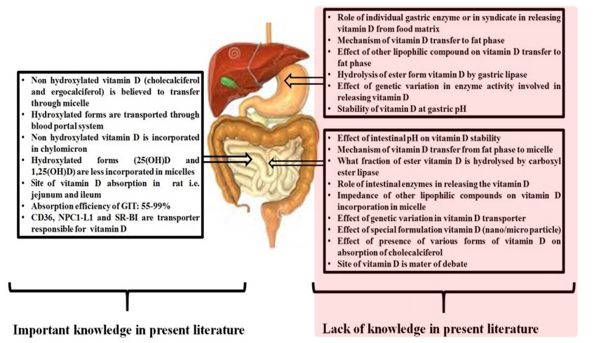 Present article is intended to review the contribution of these factors anticipated to be influencing vitamin D absorption in GIT.