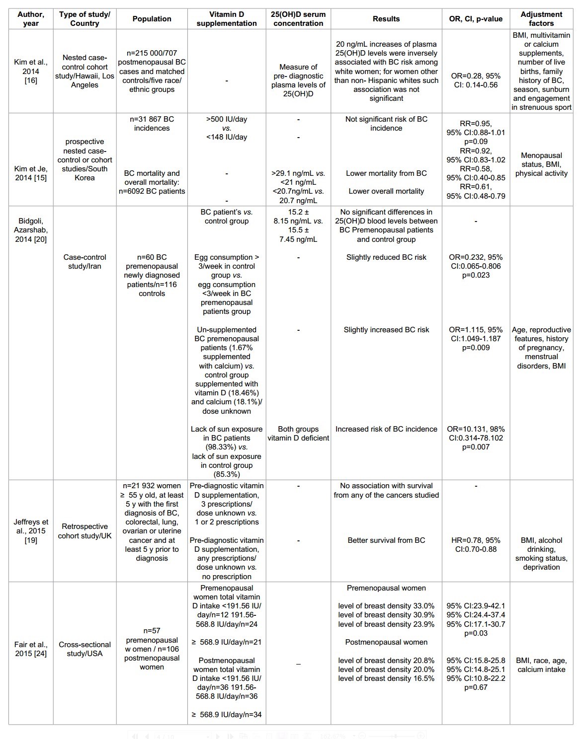 25 Meta-analyses of Vitamin D and Breast Cancer