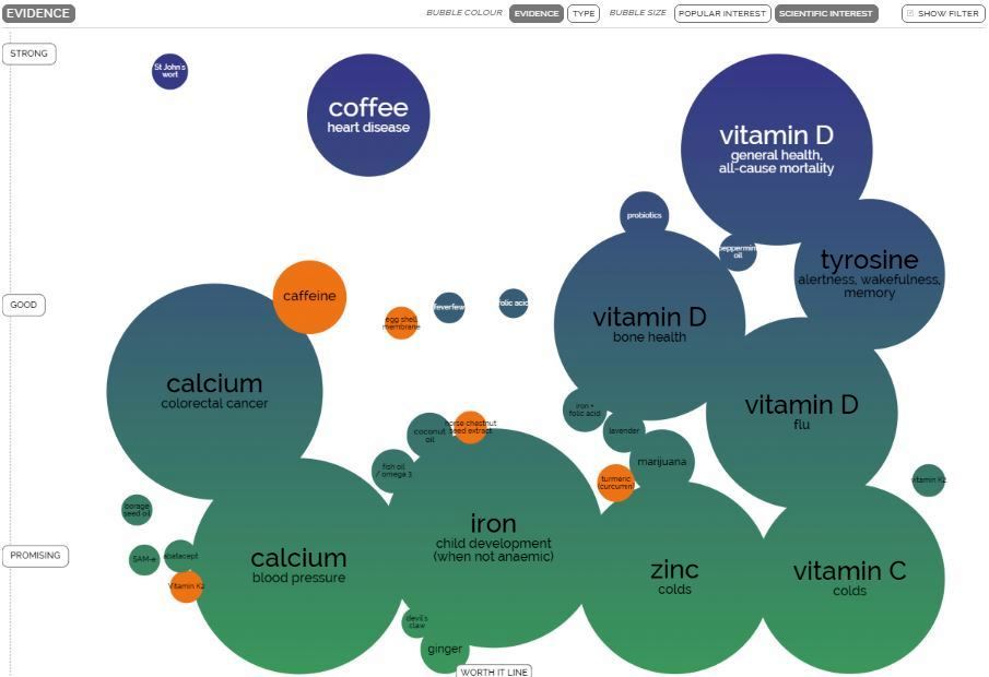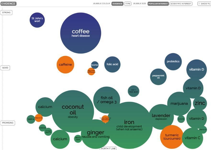 The HEIGHT of a circle is proportional to the evidence (best evidence = top)