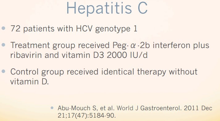 - Hepatitis-C treatment greatly enhanced with 2000 IU of Vitamin D – RCT Dec 2011