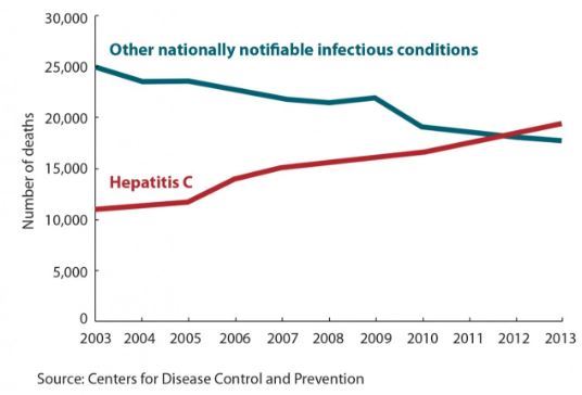 - "Hepatitis C is associated with more deaths than the other top 60 reportable infectious diseases combined"