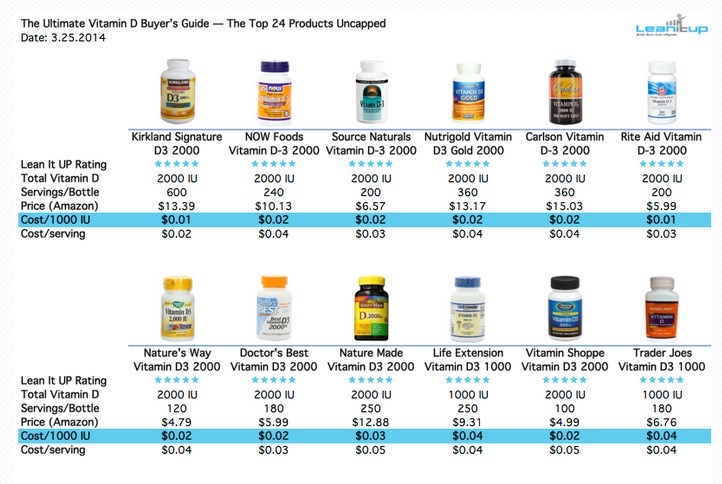 Note: He is mainly reviewing 2000 IU D3 gel caps, not pills, liquid, emulsion, spray, bulk, sublingual, vaginal, D3 for vegans, etc.
