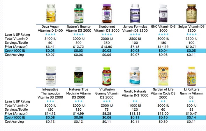 - Annual cost of 1000 IU of Vitamin D daily - Consumer Reports May 2013