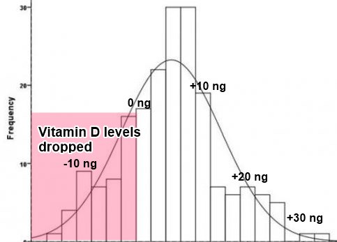 | 1) Vitamin D supplement Sun Ultraviolet -B | Vitamin D in the blood and thus in the cells |