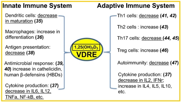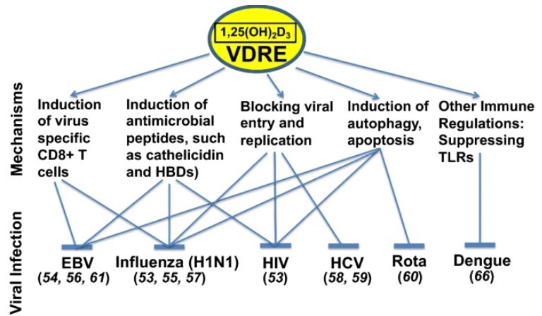 Want a chart showing the results of Vitamin D on innate and adaptive immune systems with regards to a virus and possible mutations
