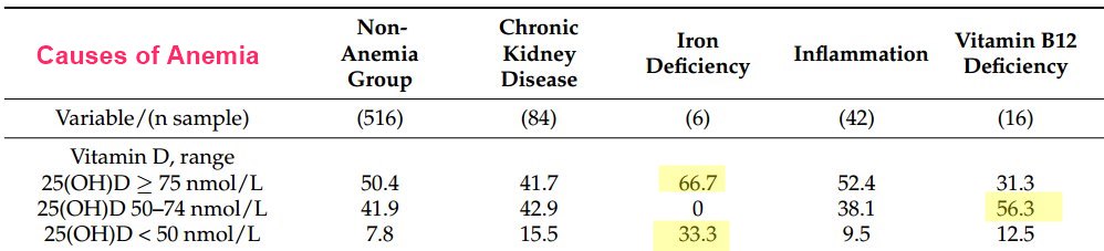 - Anemia 1.9X more likely in white children having lowish vitamin D – Jan 2014