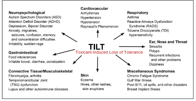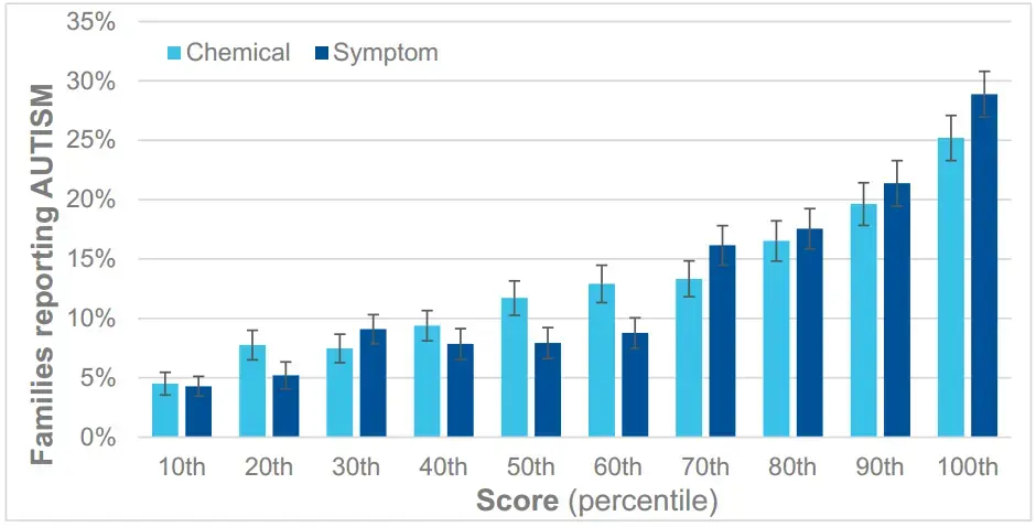 Results: Parents with chemical intolerance scores in the top versus bottom tenth percentile had 5.7 times the risk of reporting a child with autism and 2.1 times for ADHD.