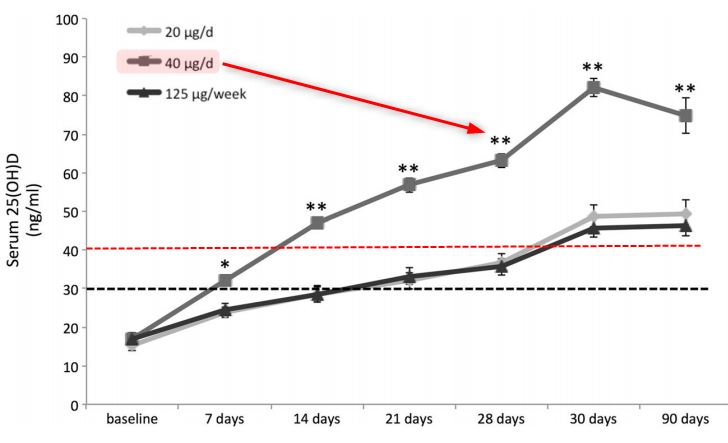 Calcidiol - daily dose has fast response, but weekly might be better - March 2018