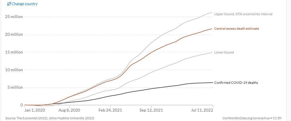 15,000,000 excess deaths in 2 years - May 2022