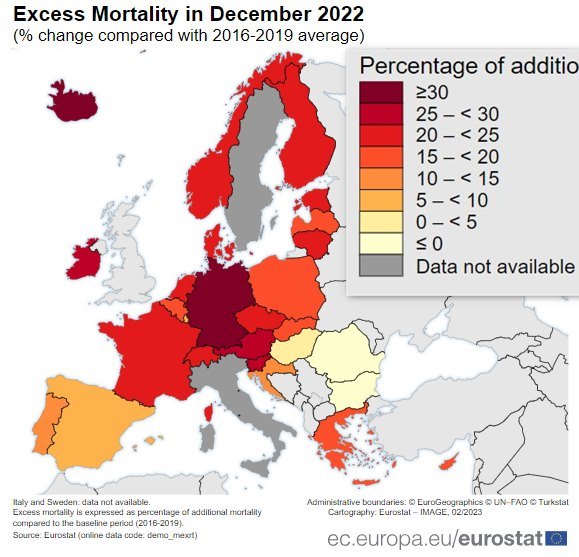 - 19% Excess mortality in Europe: Dec, 2022