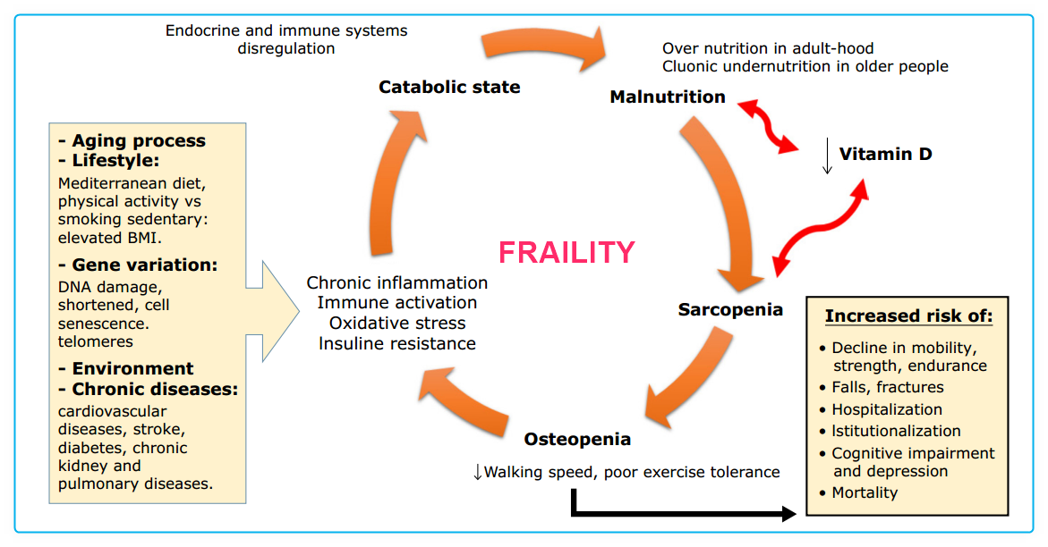 Some recent studies have found a low level of 25-hydroxyvitamin D, considered the best marker of vitamin D status, in frail individuals.