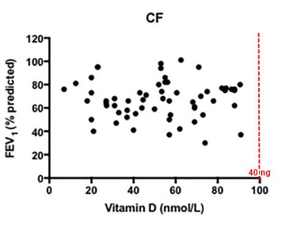 - Sexauer WP, Hadeh A, Ohman-Strickland PA, et al. Vitamin D deficiency is associated with pulmonary dysfunction in cystic fibrosis. J Cyst Fibros 2015;14(4):497-506. https://doi.org/10.1016/j.jcf.2014.12.006 [published Online First: Epub Date].
