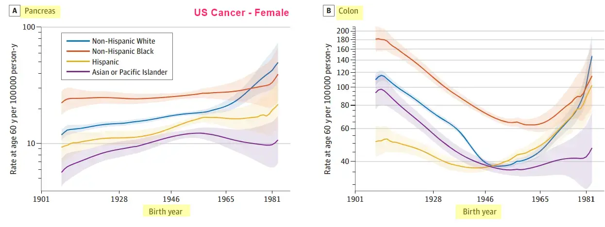 Importance The incidence of some cancers in the US is increasing in younger age groups, but underlying trends in cancer patterns by birth year remain unclear.