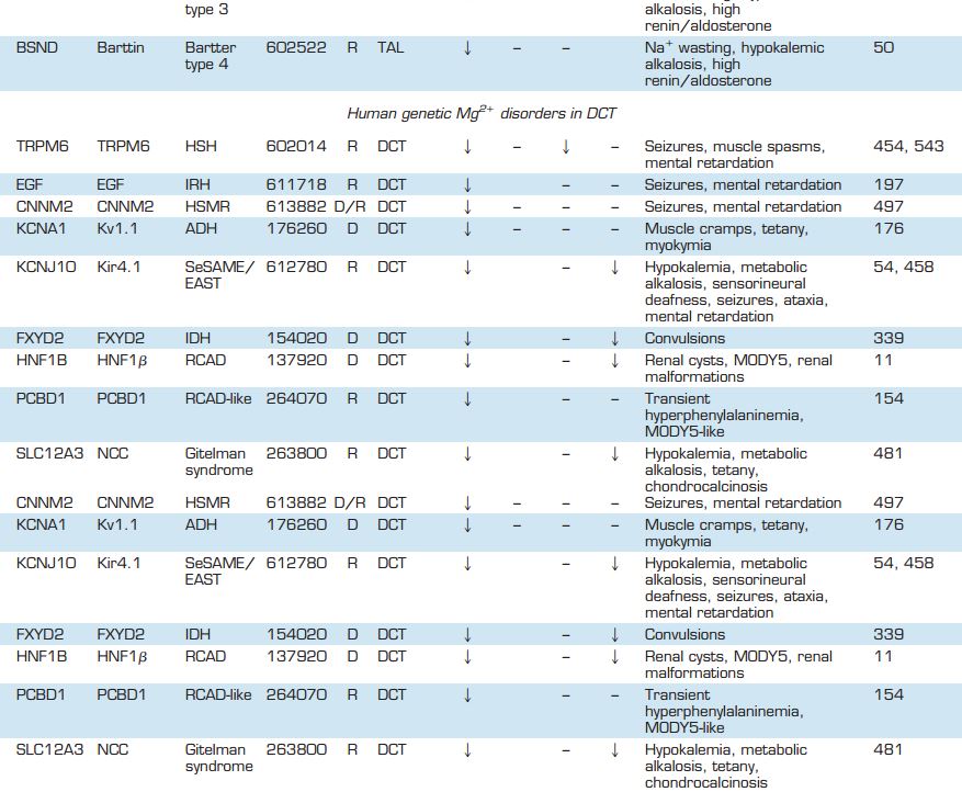 Table 5. Genetic causes of hypomagnesemia