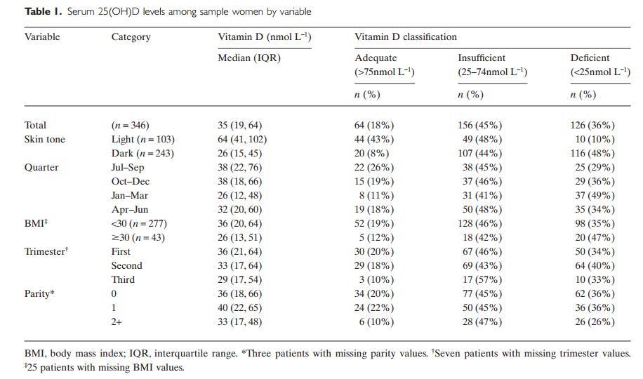 - Overview Pregnancy and vitamin D which had the following table April 2013