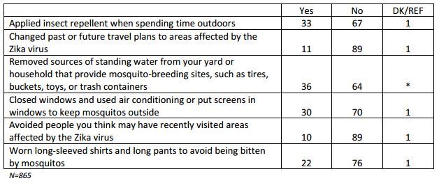 - 61% moderately worried that the country will see a large number of Zika infections in the next year