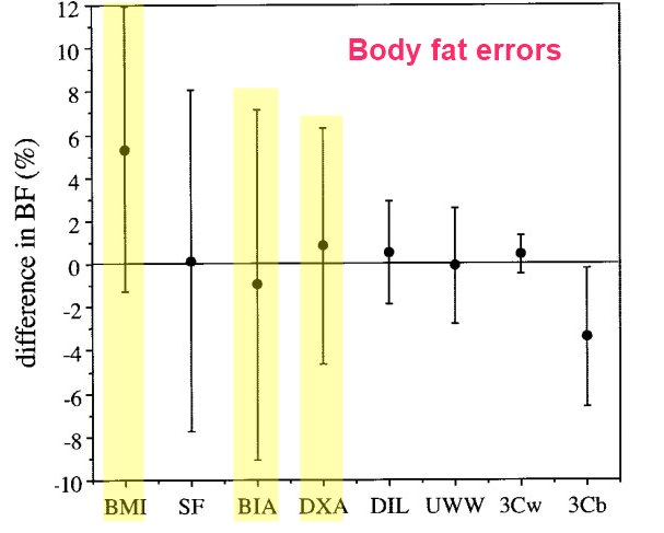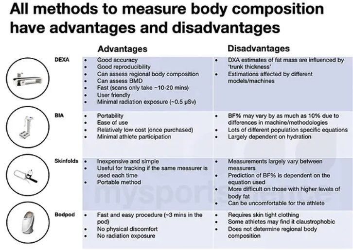 Accuracy: The accuracy of BIA can be affected by many factors, including hydration status, food intake, skin temperature, and recent physical activity. Therefore, it's less accurate than DEXA.