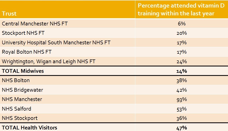 Measuring and Improving Vitamin D awareness and promotion for prenatal and postnatal women across Greater Manchester 2013