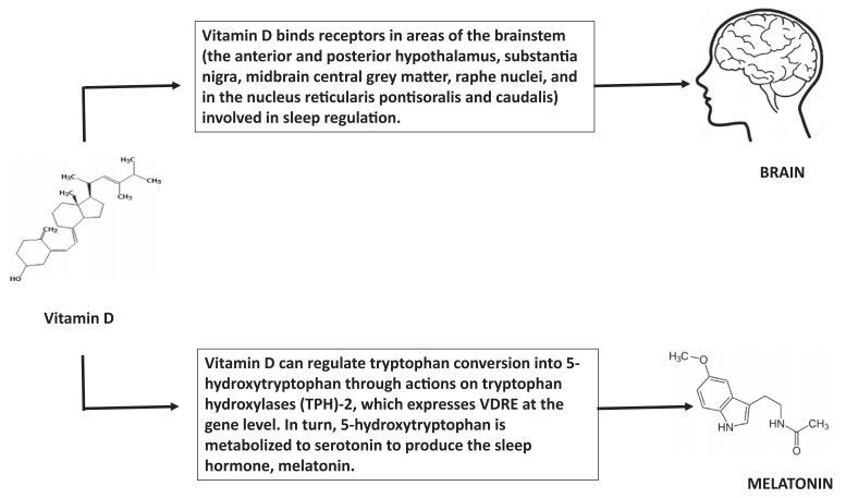 Vitamin D is a pro-hormone belonging to the category of the fat-soluble group of vitamins; it is obtained more from solar exposure and in smaller quantities through feeding. Although vitamin D has traditionally been shown to be involved in calcium homeostasis and bone health, recent studies have found a positive association between vitamin D and sleep. In particular, clinical studies in humans indicate that low levels of vitamin D are correlated with poor quality and short sleep duration. The mechanism by which this association is explained is still unclear. However, vitamin D receptors have been found in the brain regions involved in sleep regulation, and vitamin D appears to be involved in regulating the sleep-wake cycle. The current review summarizes the available evidence regarding the association between vitamin D and sleep, focusing on both clinical and preclinical studies.