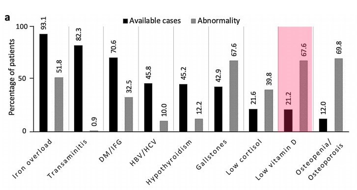 Vitamin D deficiency is a common comorbidity in patients with thalassemia. However, both its prevalence and its severity vary considerably in different populations, and existing evidence is insufficient to conclude whether vitamin D supplementation is also associated with BMD improvement in this special population group.
