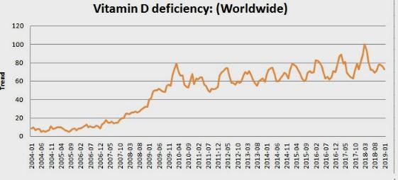 - Vitamin D levels are lower than 20 ng in half of the world – Dec 2017