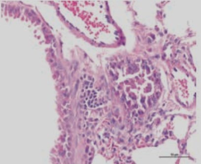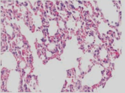 Lung microphotograph after 16 weeks of smoke