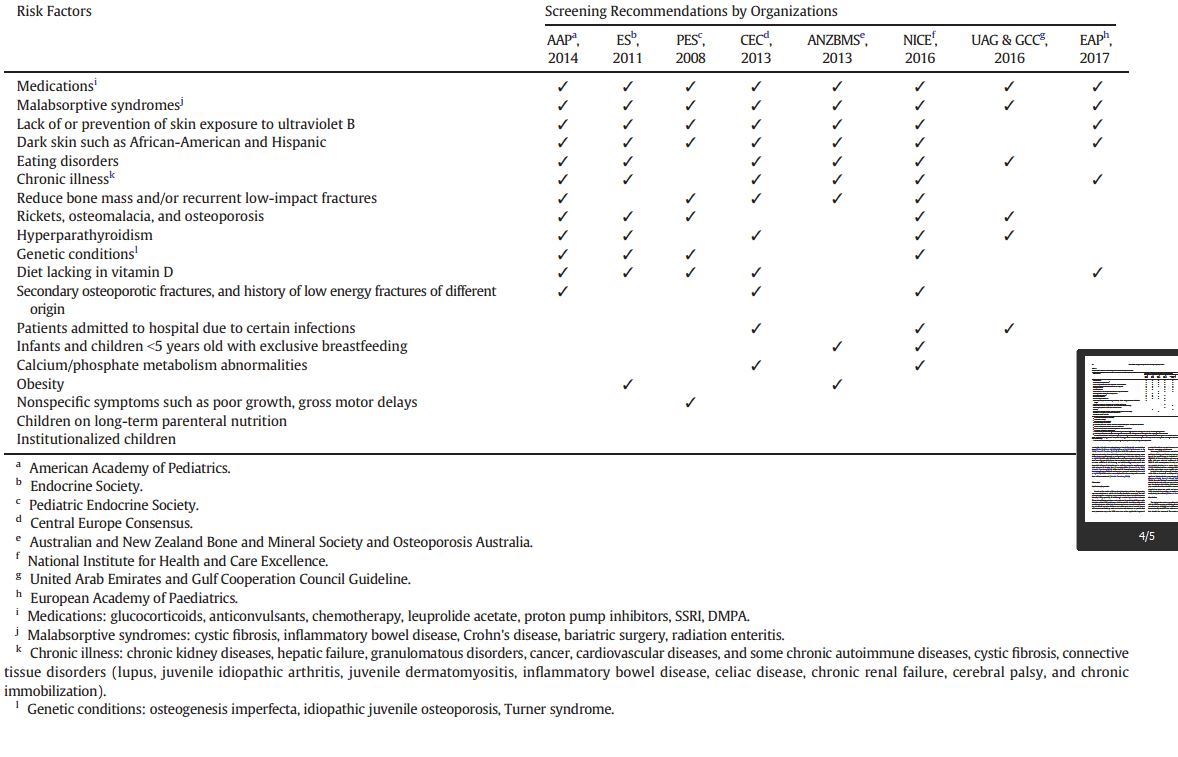 Conclusions: There is insufficient evidence for pediatric healthcare providers to recommend which VDD risk factors should be utilized for screening in children and adolescents.