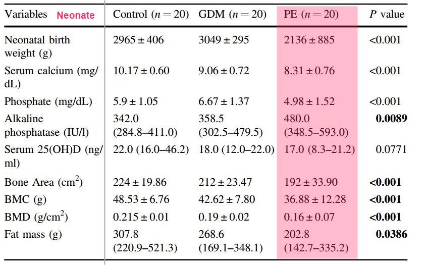 Similarly, calcium transporters were downregulated in GDM and PE placental tissues. In addition, CYP24A1, VDR, CaBP28K, TRPV5 and PMCA3 mRNA expression were correlated with BMC of neonates.