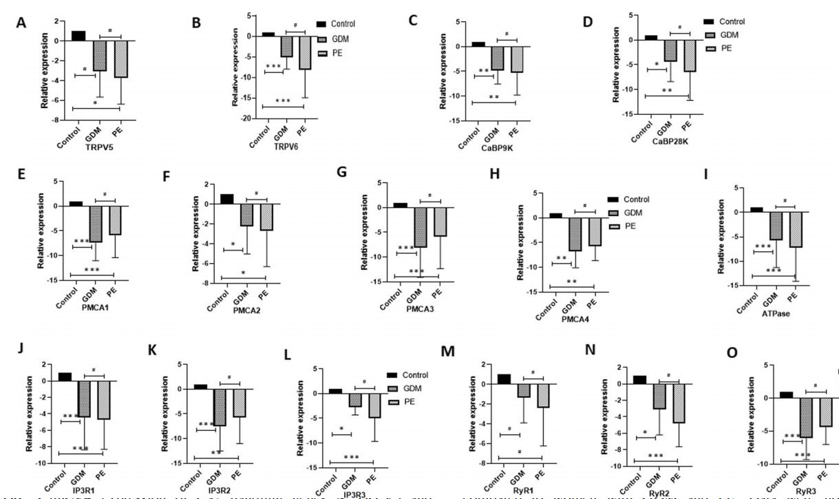Methods: We have collected serum and placenta tissues from GDM (n = 20), PE (n = 20), and healthy pregnancies (n = 20). In the present study, we found mRNA expression of oxidative stress markers, vitamin D metabolic components and calcium channels, calcium channel binding proteins, plasma membrane calcium ATPase, ATP synthase and Ca2+ release genes; Ryanodine receptors genes were assessed by quantitative real-time PCR (qRT-PCR) in placental tissue of GDM, PE, and healthy pregnancies.
