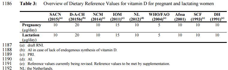 • For pregnant and lactating women, the Panel sets the same AI as for non-pregnant non-lactating women, i.e. 15 ug/day.